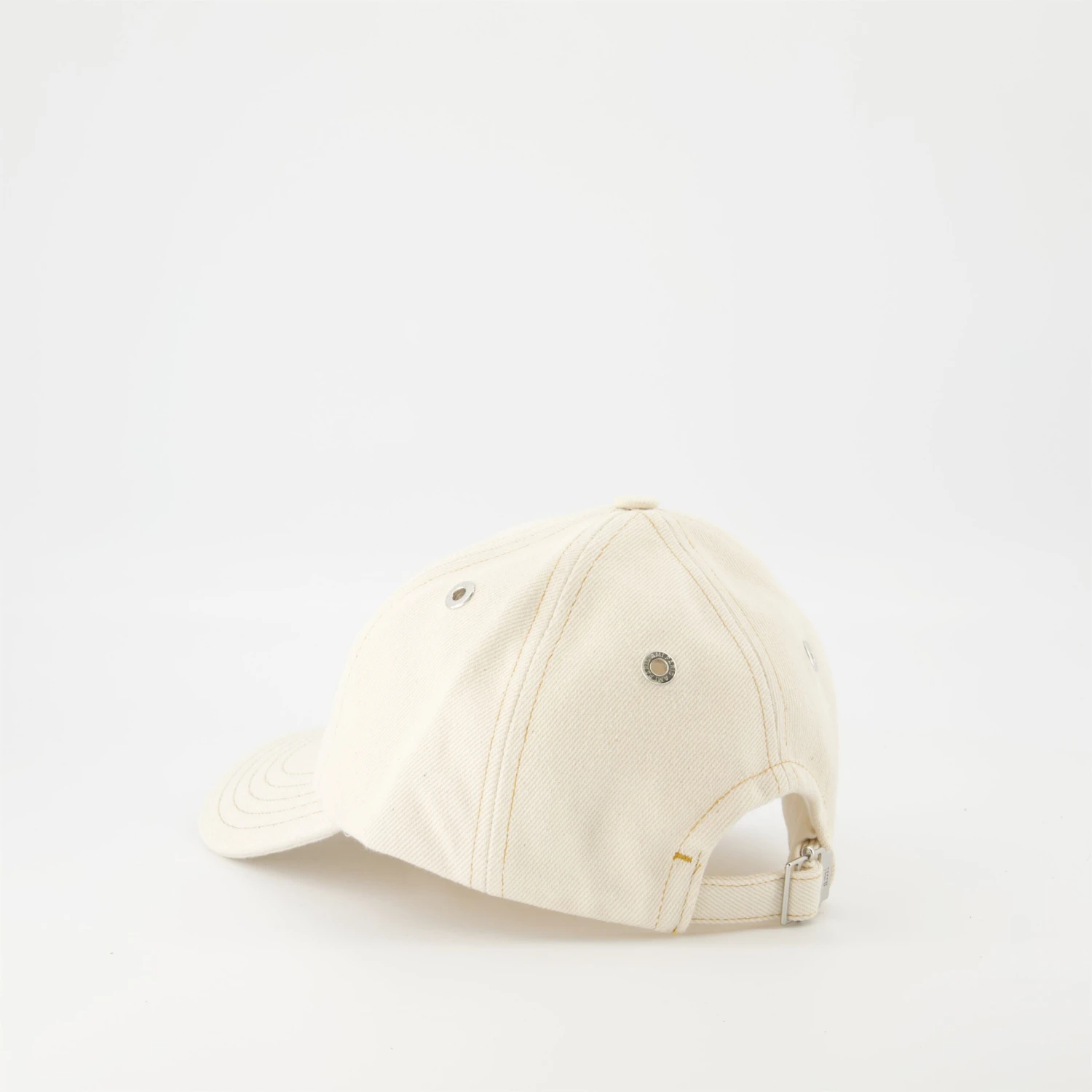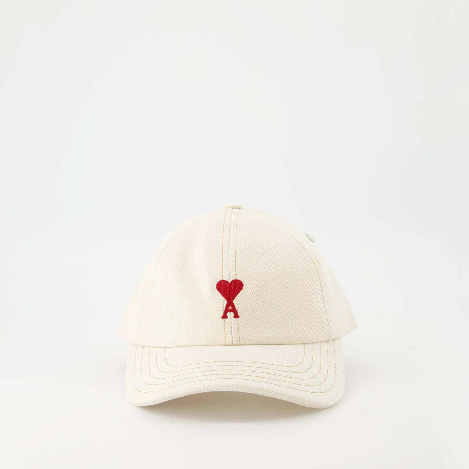 Casquette Ami de coeur beige de la marque Ami Paris est un accessoire unisexe. Elle fait partie de la collection Printemps-Été 2025 et est réalisée en coton avec un design à oeillets.