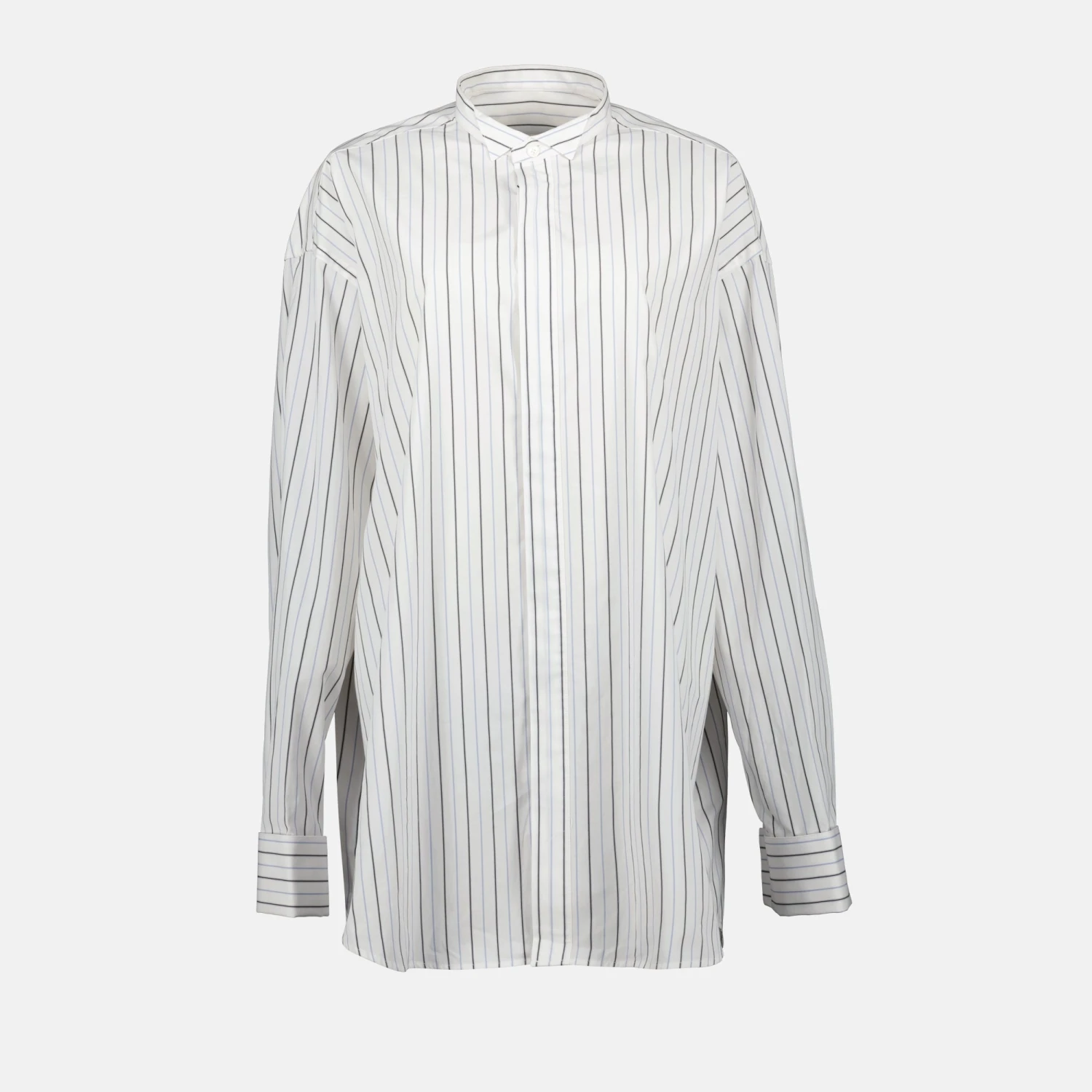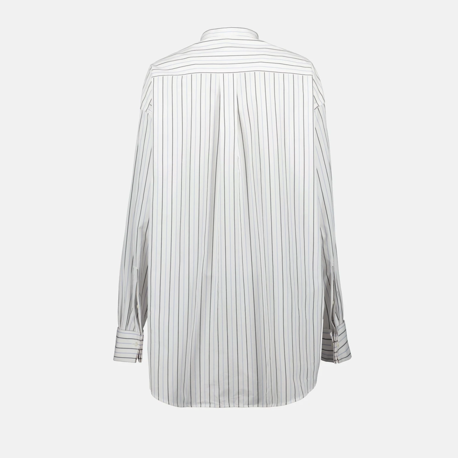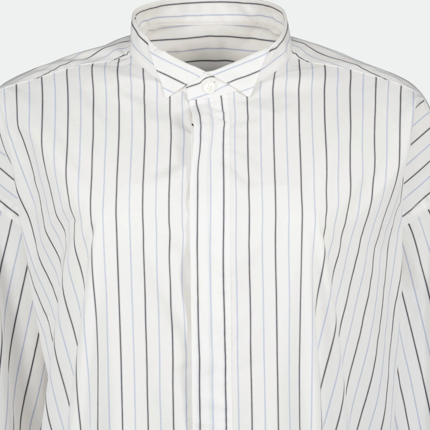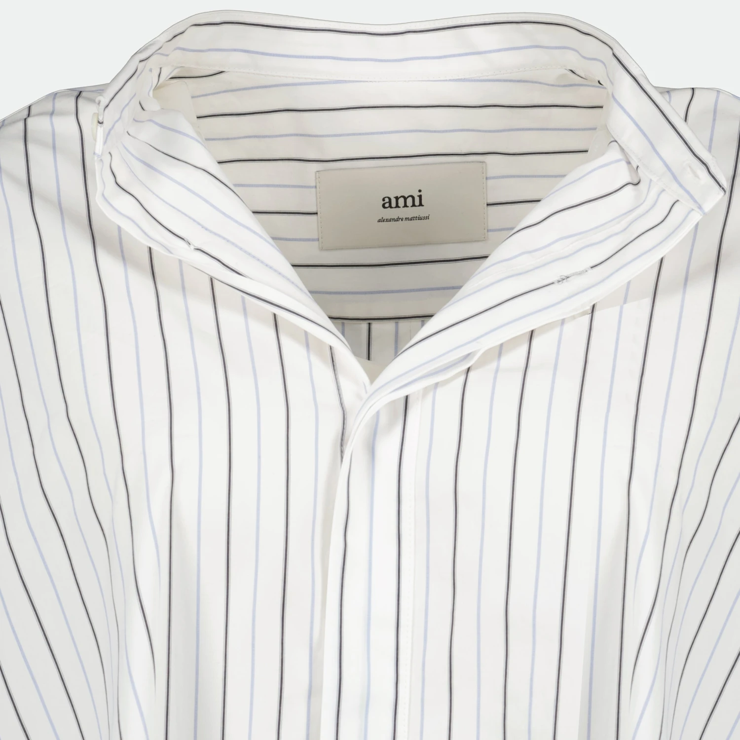 Chemise oversize à rayures d’AMI Paris pour femme, réalisée en popeline de coton. Cette pièce fait partie de la collection Printemps-Été 2025 et présente un col classique et des manches longues.