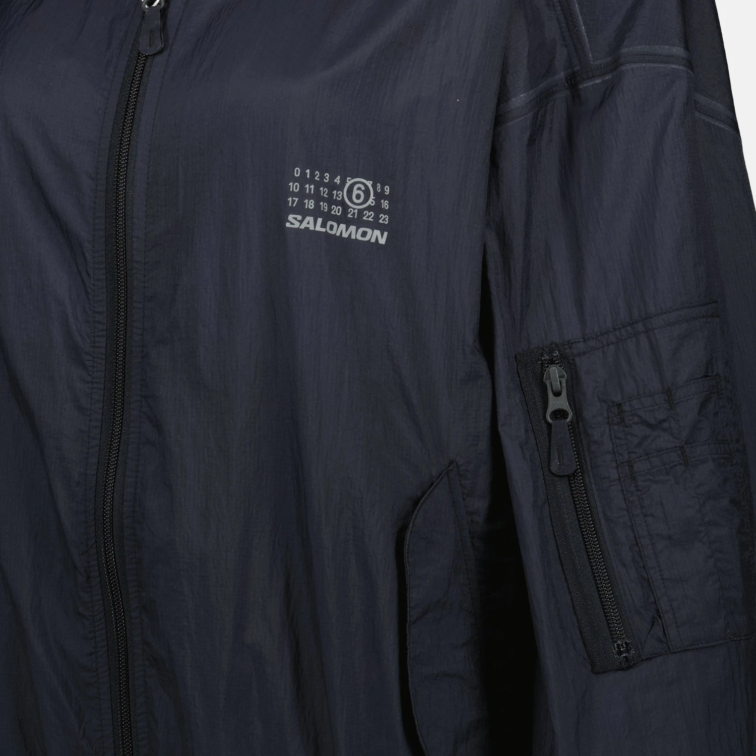 Le coupe-vent MM6 x Salomon est un vêtement pour femme de la collection Printemps-Été 2025. Il est confectionné en polyamide, avec des détails modernes et fonctionnels.