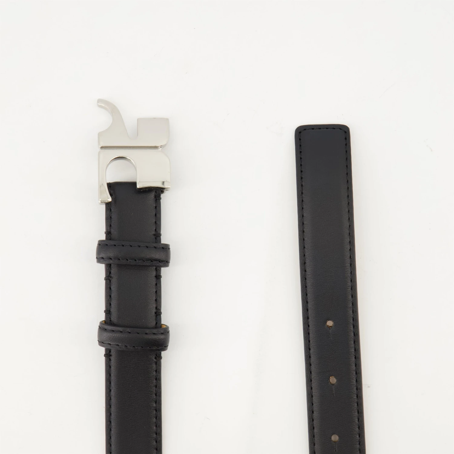 Ceinture en cuir noir AC de Courrèges est conçue pour les hommes. Elle fait partie de la collection Printemps-Été 2025 et présente un design élégant avec une boucle en métal argenté.