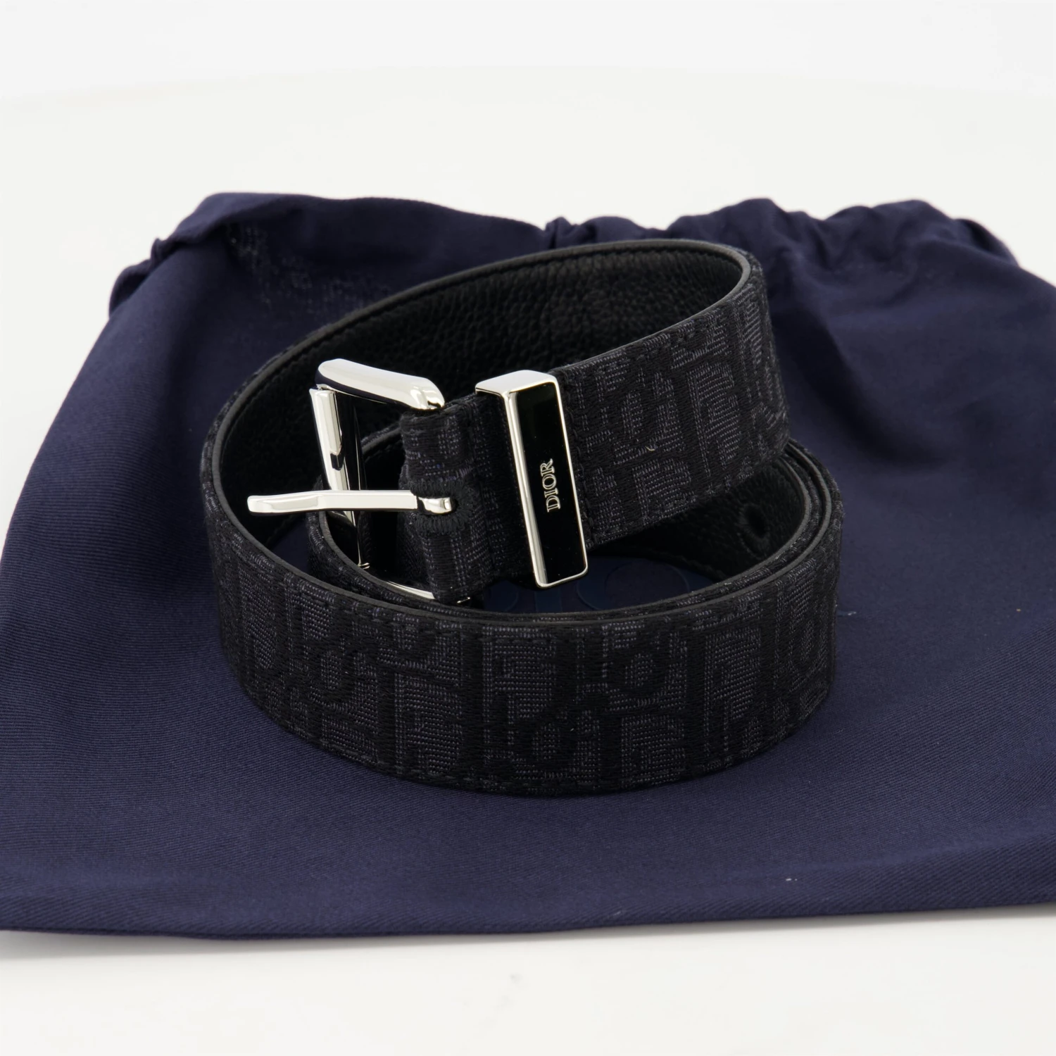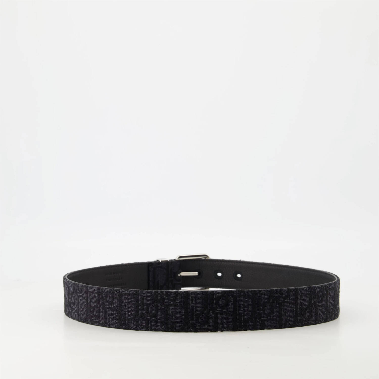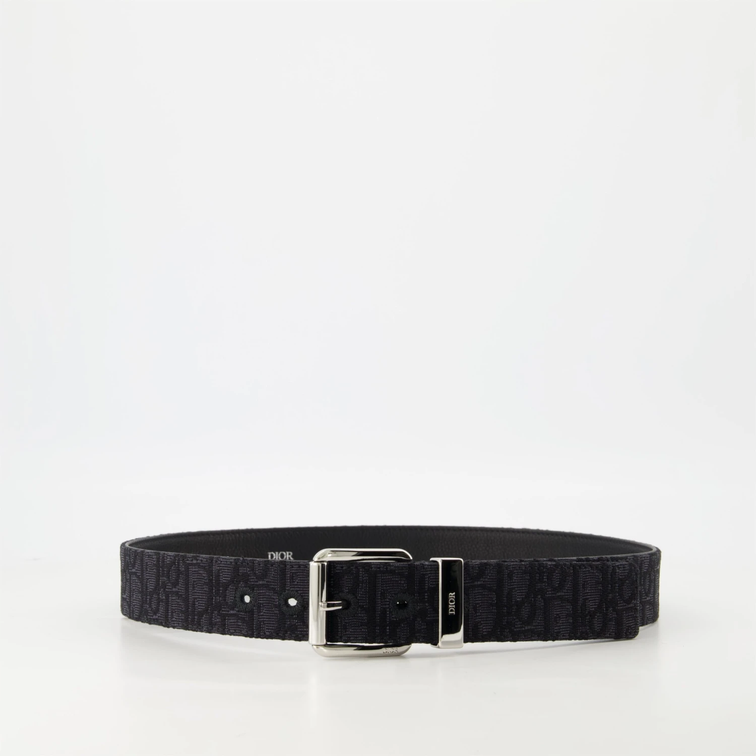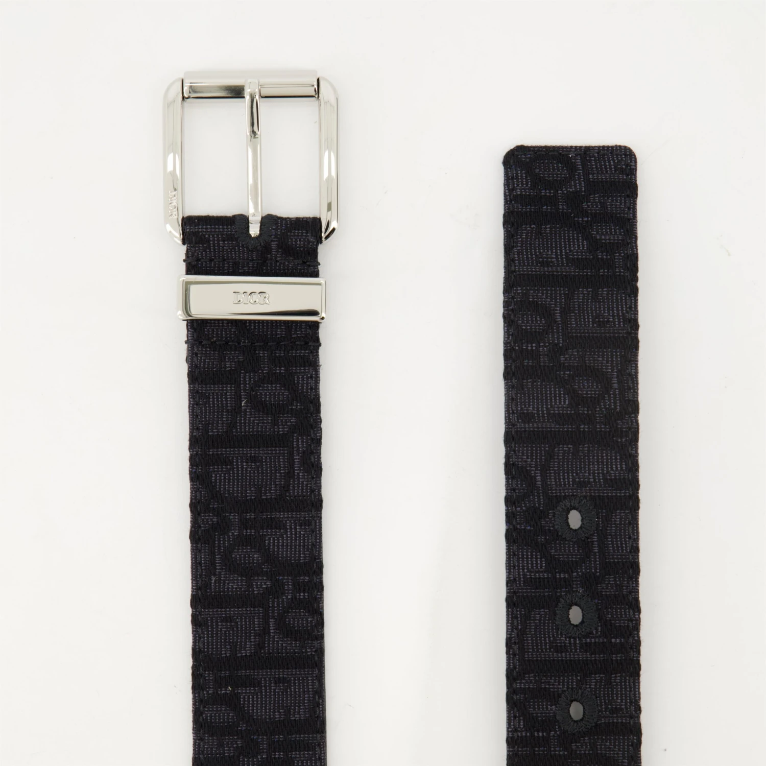 Ceinture Oblique en jacquard de Dior pour homme, réalisée en coton et cuir de veau. Cette pièce fait partie de la collection Printemps-Été 2025 et présente un design ajustable et élégant.