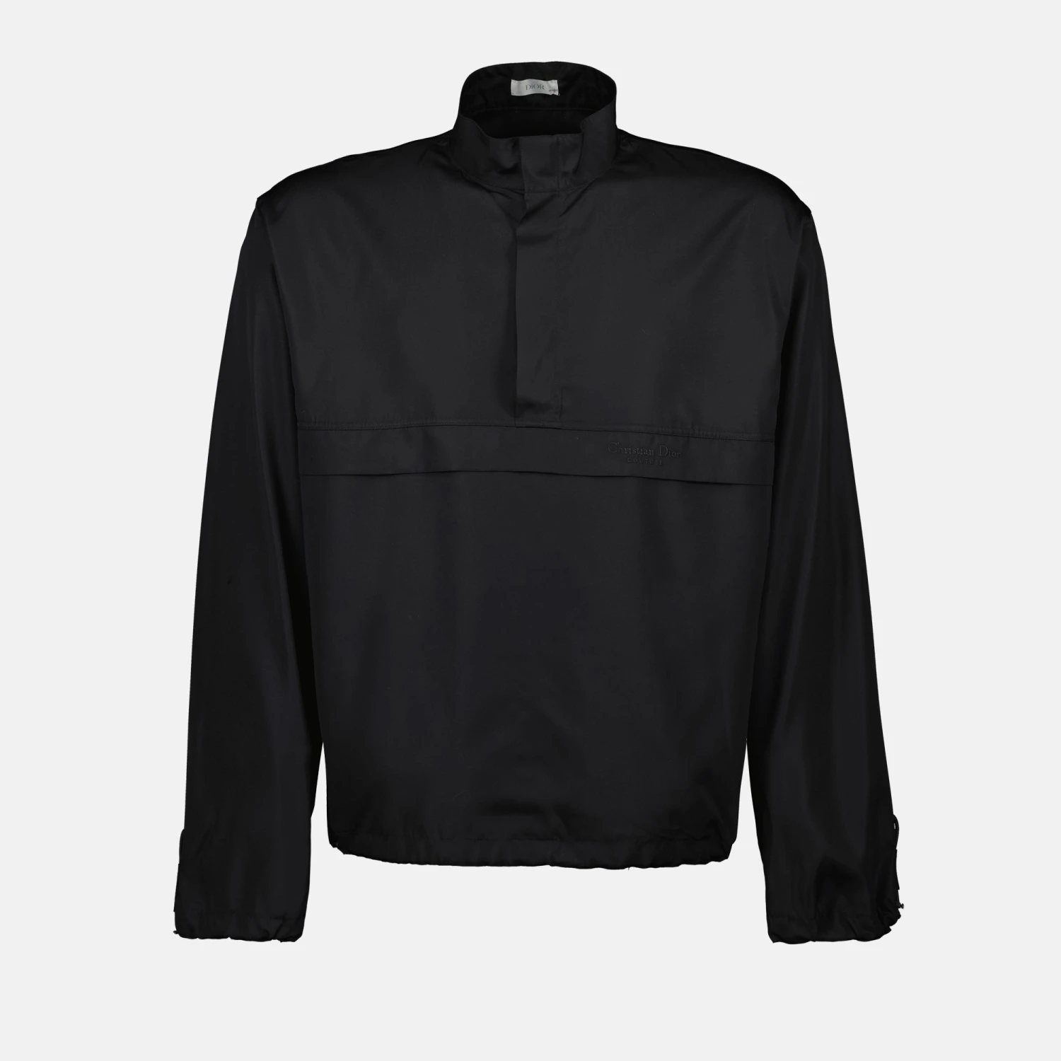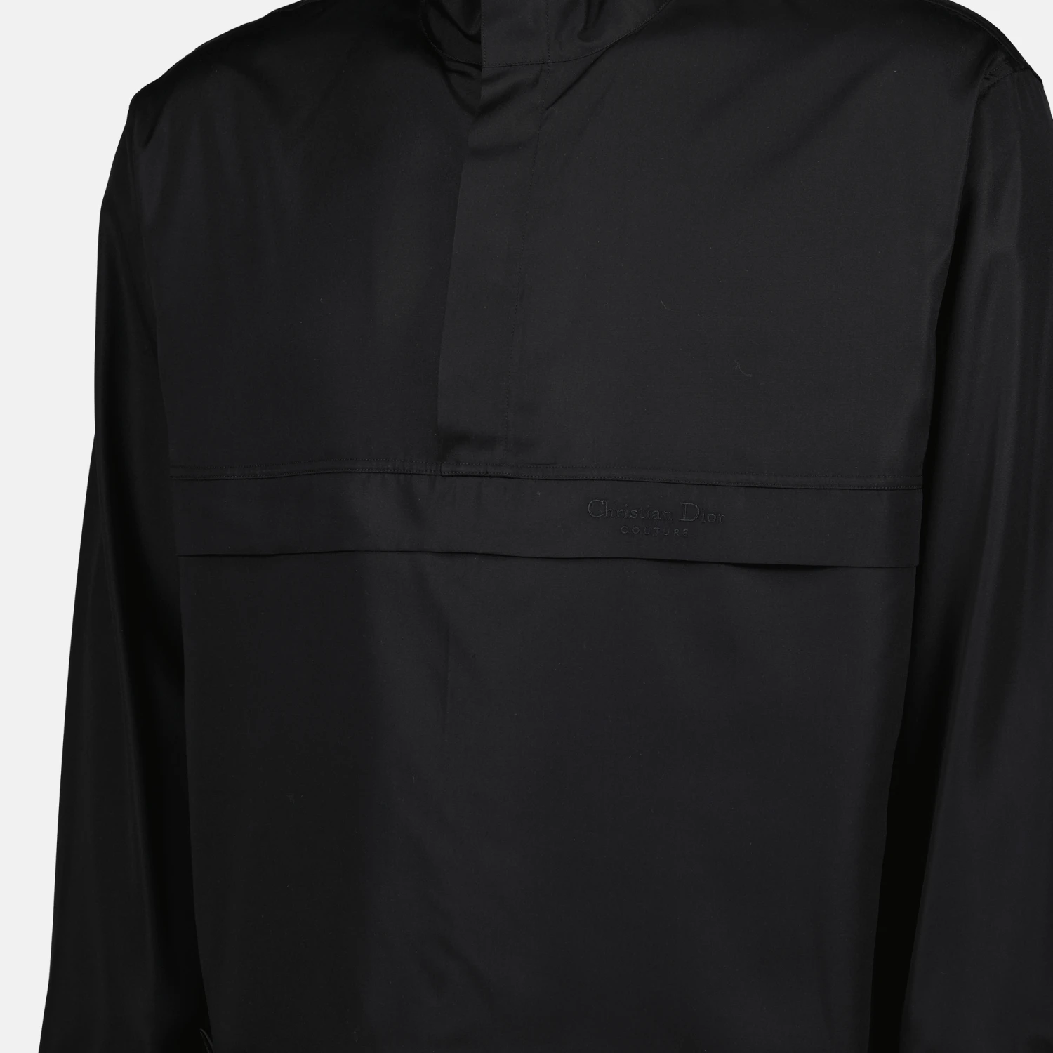 Le coupe-vent brodé noir de Dior est une pièce élégante pour homme. Cette création fait partie de la collection Printemps-Été 2025 et est réalisée en soie avec une broderie Christian Dior Couture.