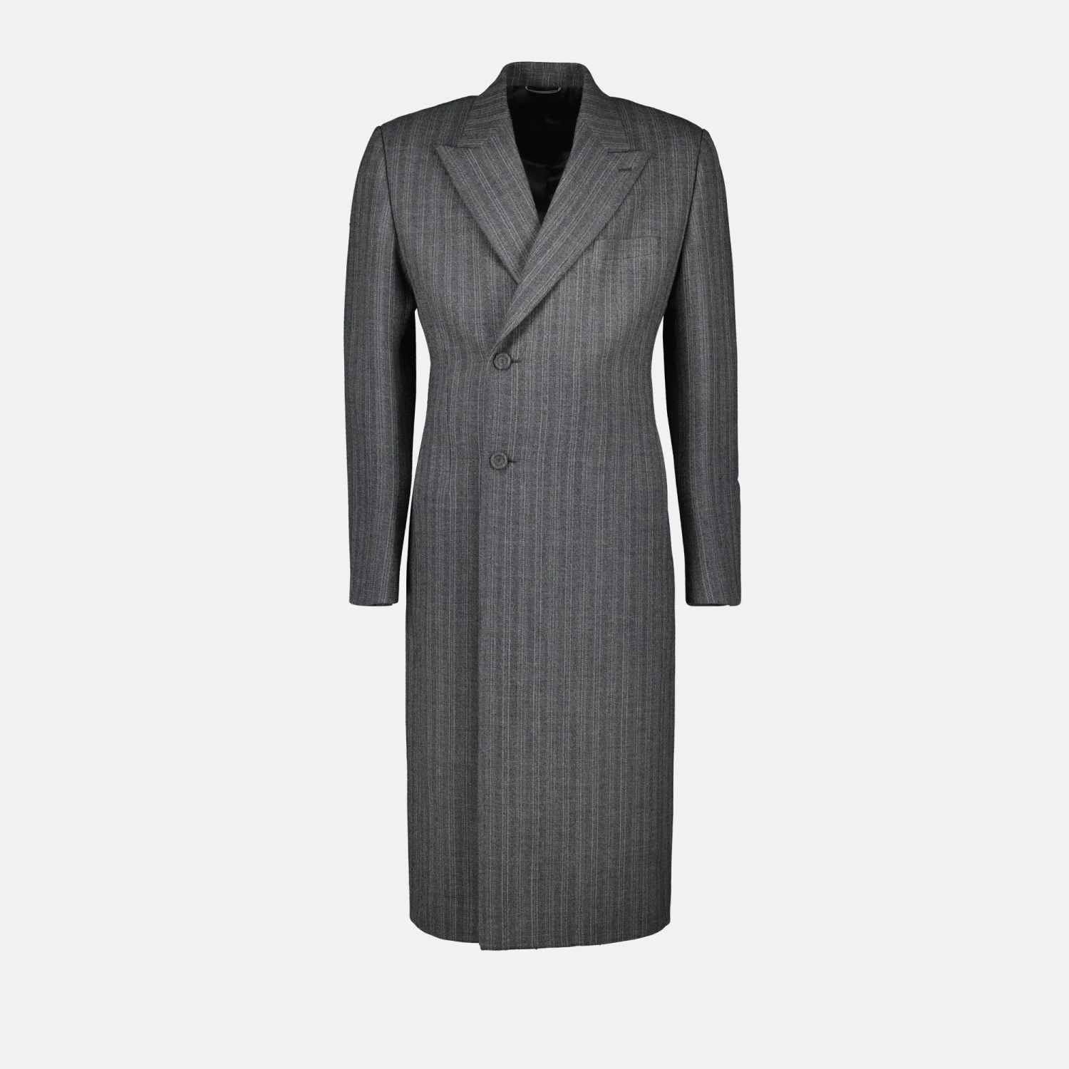 Manteau long Bar Dior collection Automne-Hiver 2024 pour Homme. Réalisé en laine. Article Motif rayé. Col à revers en pointe et Manches longues.
