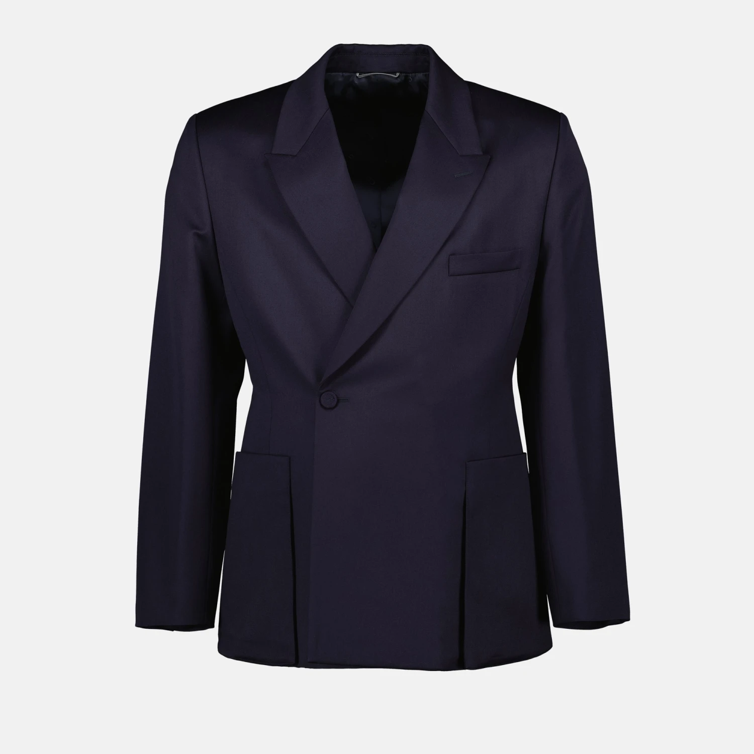Veste blazer Bar Dior collection Automne-Hiver 2024 pour Homme. Réalisé en laine. Article Couleur bleu marine. Col à revers en pointe et Manches longues.