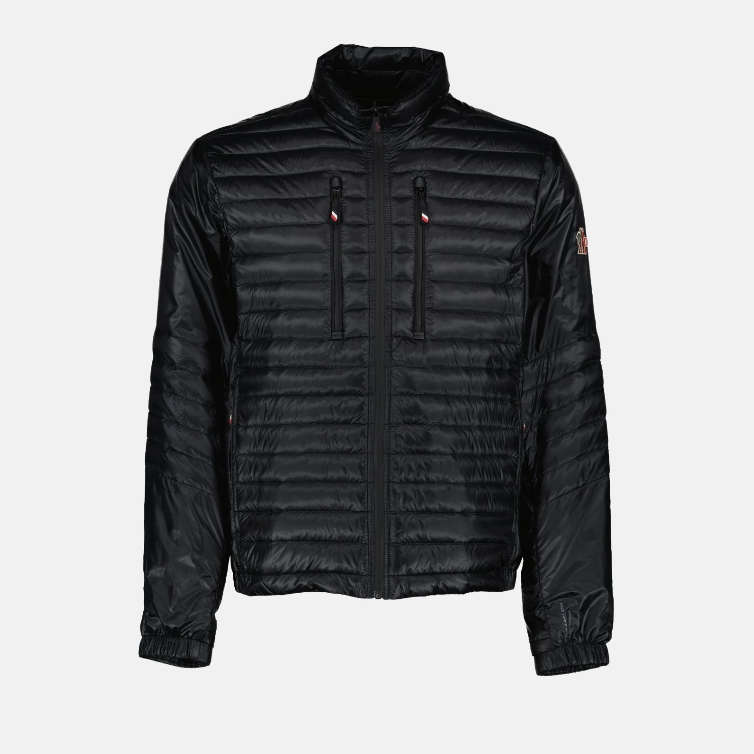Doudoune Althaus noire de Moncler Grenoble pour homme, allie style et confort avec son col montant, manches longues et poches zippées. Cette pièce fait partie de la collection Printemps-Été 2024.