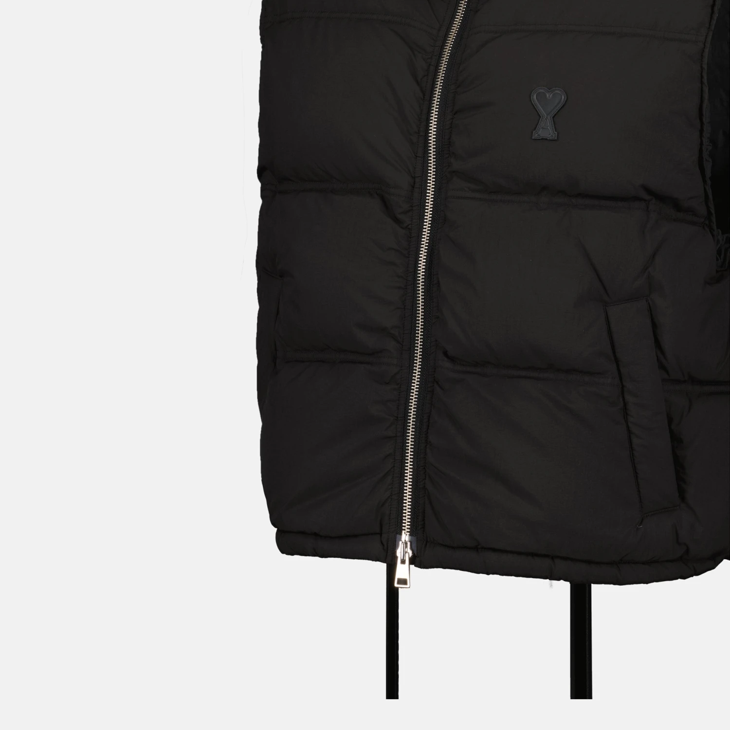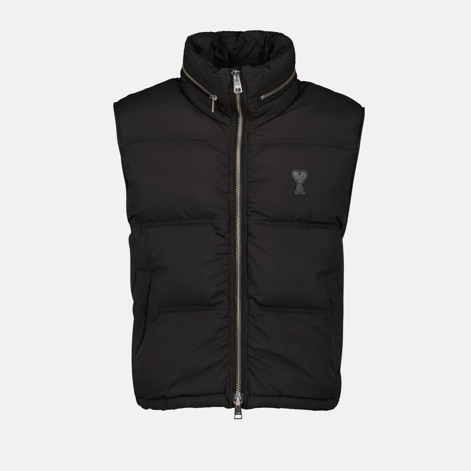 Doudoune sans manches AMI de Coeur AMI Paris collection Automne-Hiver 2024 pour Homme. Réalisé en nylon. Article Couleur noir. Col montant et Design sans manches.