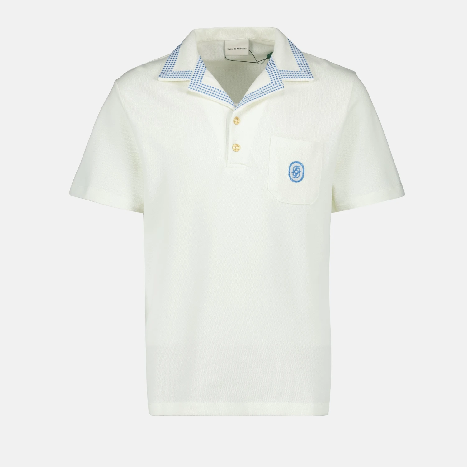 Polo en coton piqué damier de la marque Drôle De Monsieur pour homme. Cette pièce fait partie de la collection Printemps-Été 2025 et présente un design classique avec des détails modernes.