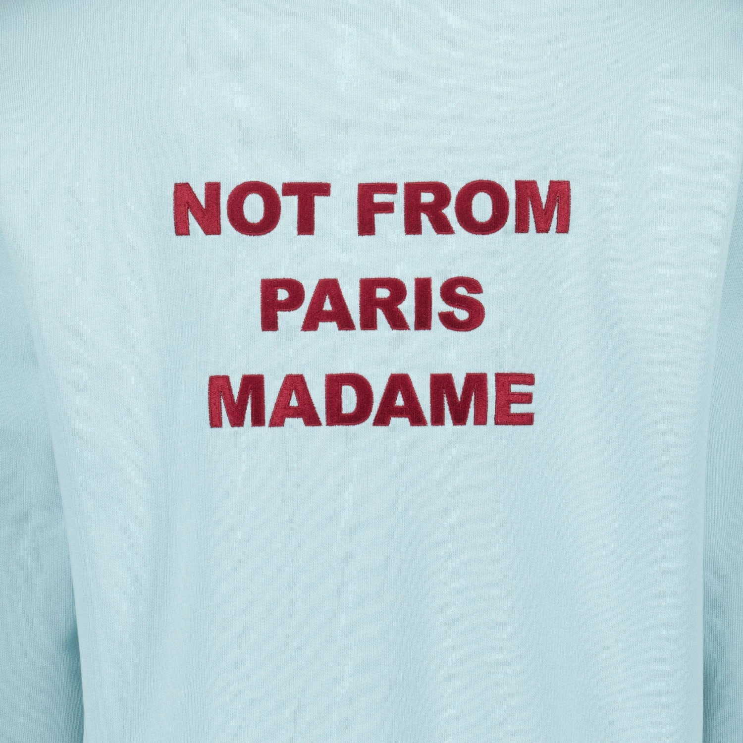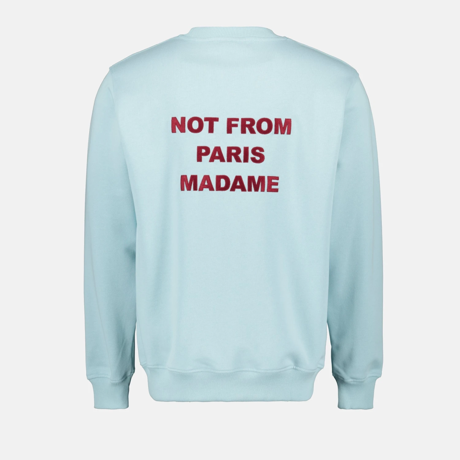 Sweat Slogan bleu clair de la marque Drôle De Monsieur. Conçu pour homme, il fait partie de la collection Printemps-Été 2025 et est réalisé en coton avec un logo brodé.