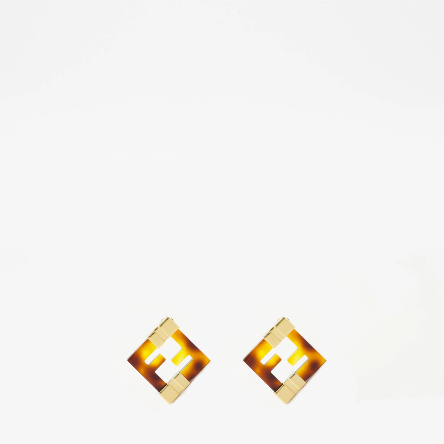 Boucles d’oreilles Forever de Fendi, en plexiglas marron et bronze, sont un accessoire féminin élégant. Elles font partie de la collection Printemps-Été 2025, avec un motif FF distinctif et un design chic.