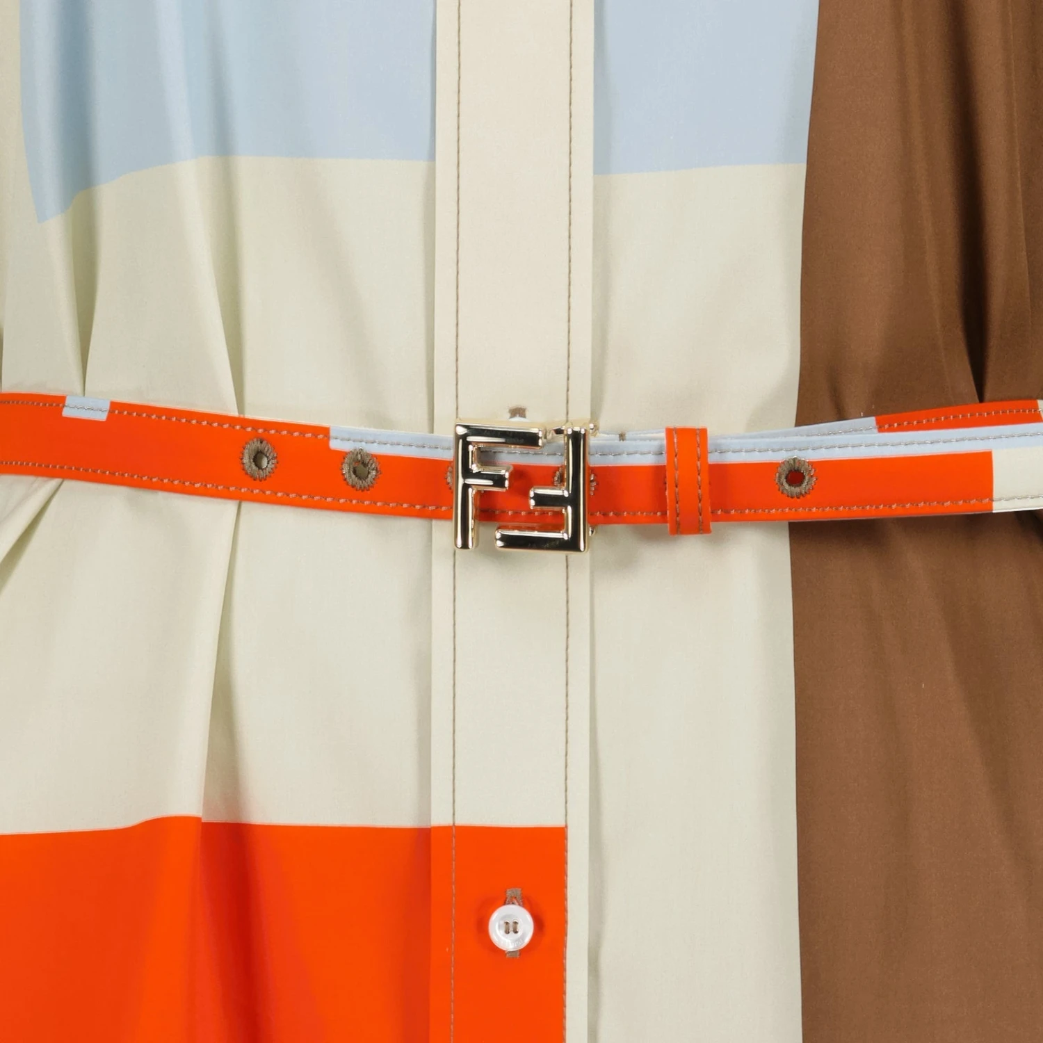 Robe à imprimé multicolore Puzzle Fendi collection Printemps-Été 2024 pour Femme. Réalisé en popeline. Article de couleur Multicolore. Col officier et Manches longues.