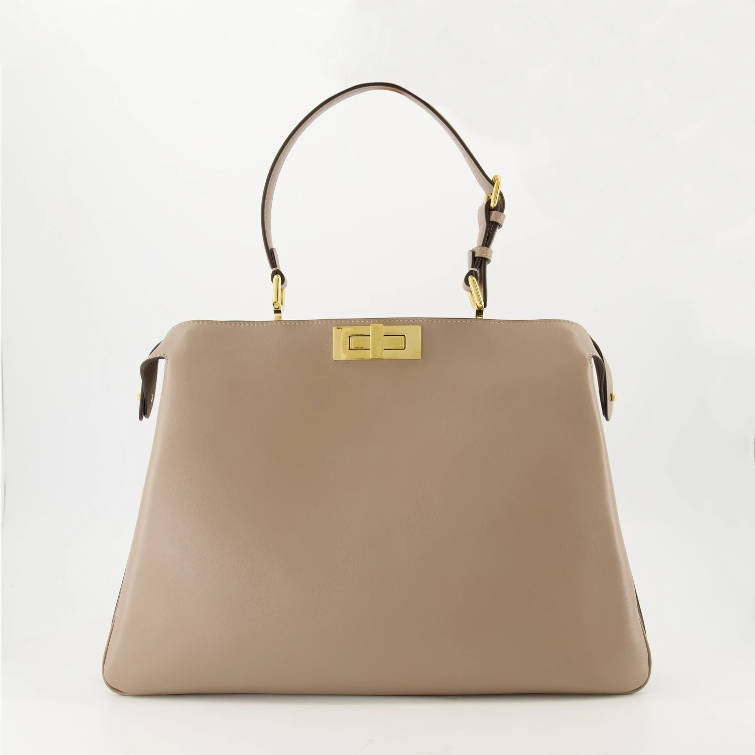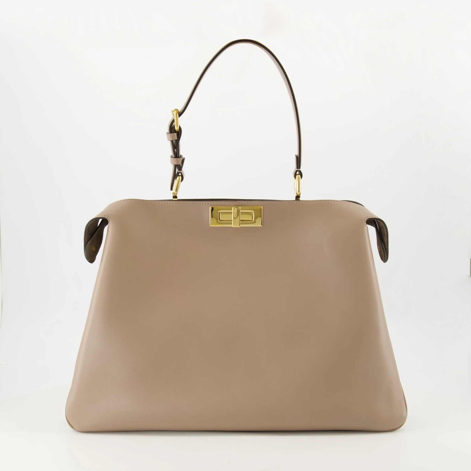 Le Sac Peekaboo Soft Large beige de Fendi est un accessoire élégant pour femme. Il fait partie de la collection Printemps-Été 2025, réalisé en cuir de veau avec des finitions dorées.