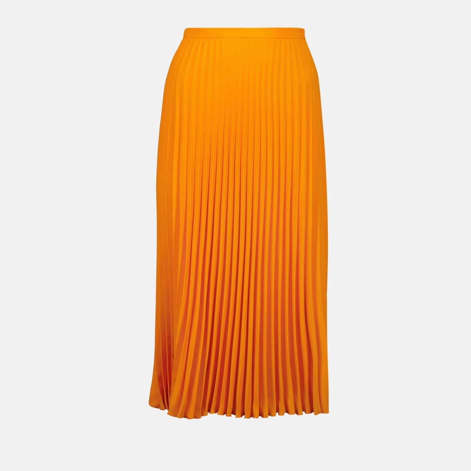 Jupe à plis orange de la marque MM6, conçue pour les femmes. Cette pièce fait partie de la collection Printemps-Été 2025 et est réalisée en polyester.