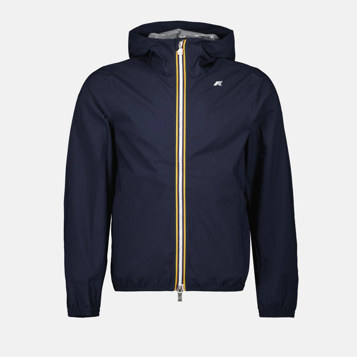 Le coupe-vent Jack Eco bleu de K-Way est un vêtement pour homme de la collection Automne-Hiver 2024. Il est fabriqué en polyester et présente des détails tricolores sur les zips.