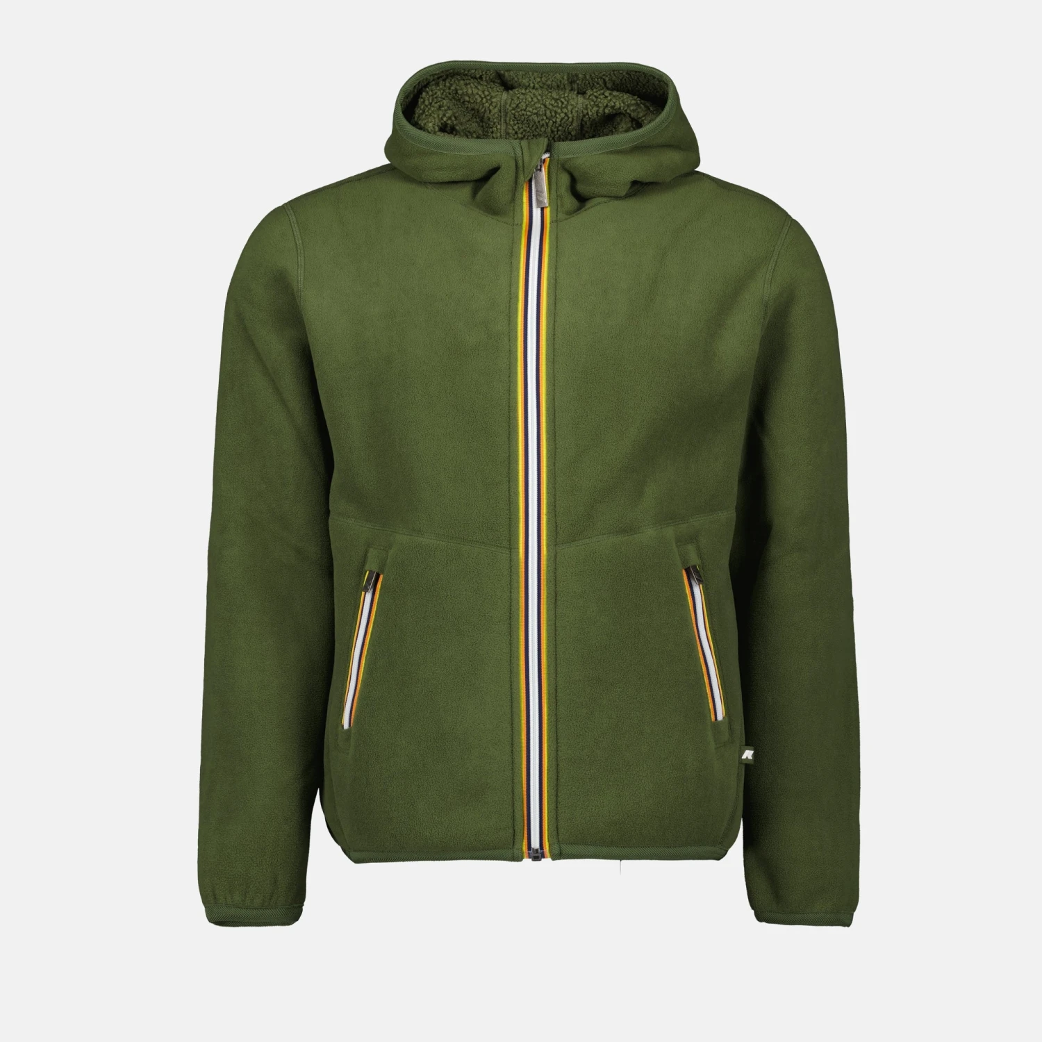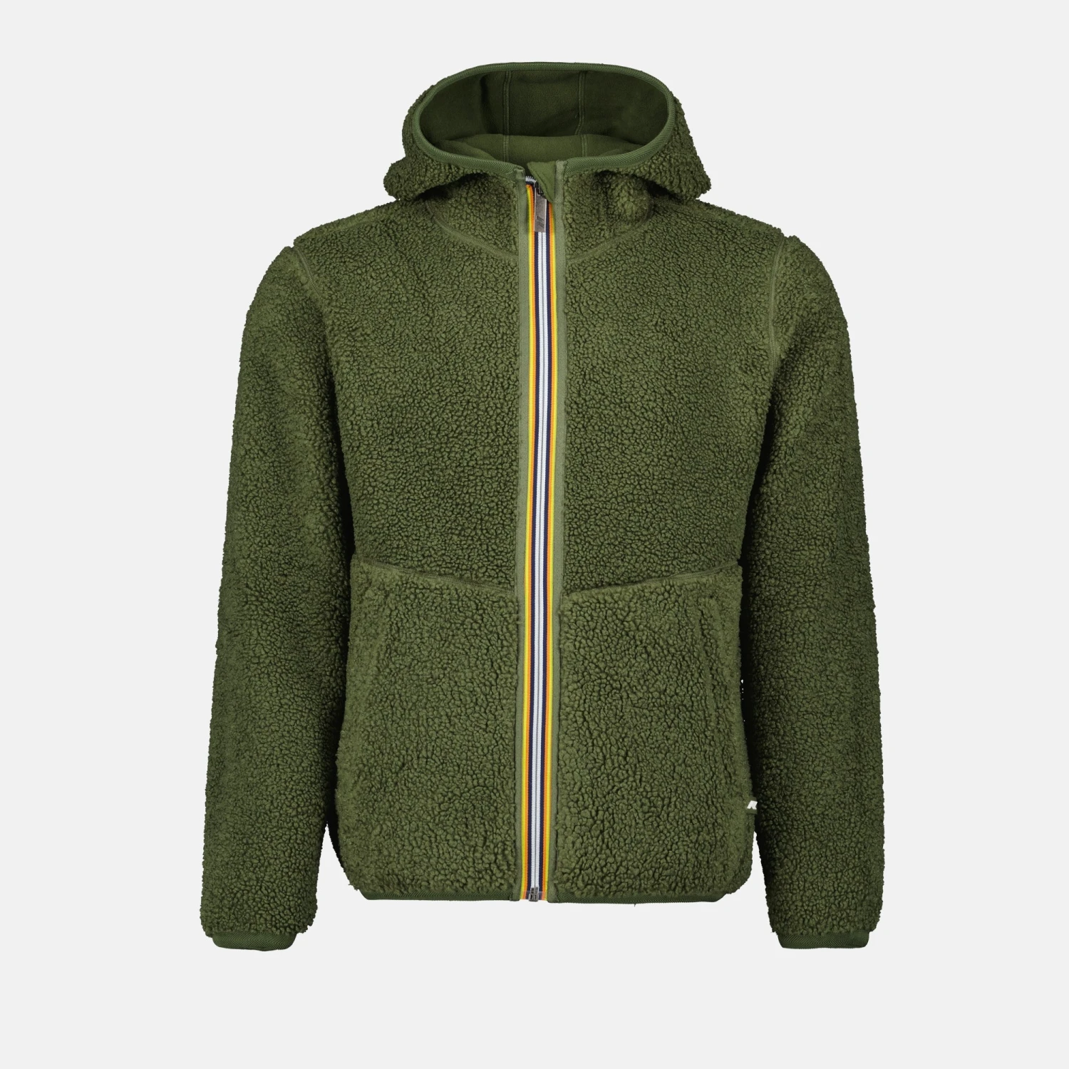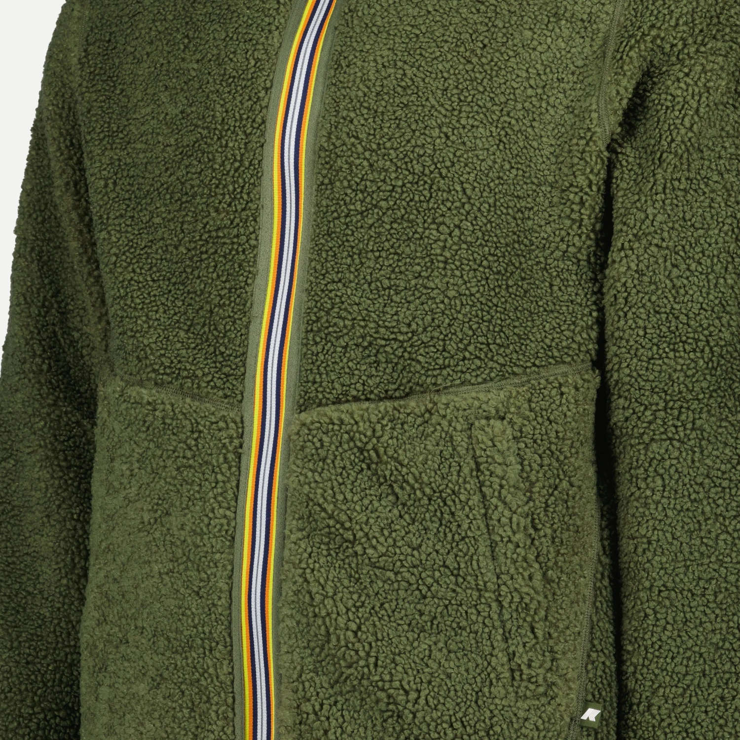 Veste réversible Sherpa Polar vert kaki de K-Way pour homme, alliant confort et style. Collection Automne-Hiver 2024, elle présente une face en polaire lisse et une face en polaire bouclé.