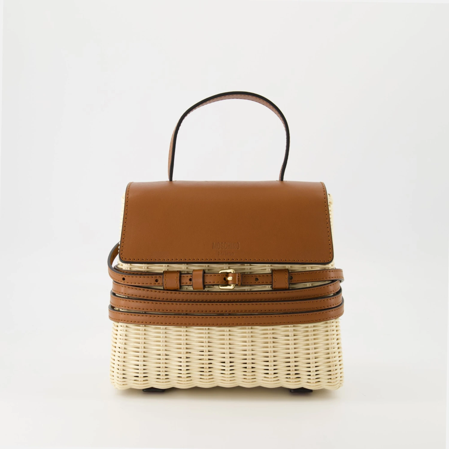 Le Sac Tie Me small en raphia marron de Moschino est un accessoire féminin de la collection Printemps-Été 2025. Il allie élégance et praticité avec ses détails raffinés.