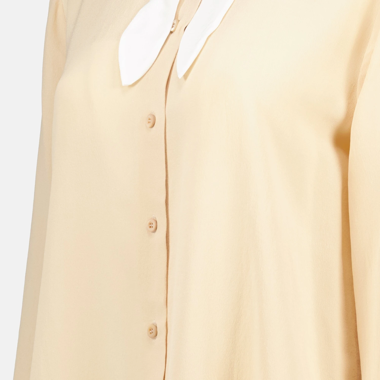 Chemise en soie beige Prada collection Automne-Hiver 2024 pour Femme. Réalisé en soie. Article Couleur beige. Col foulard et Manches longues.