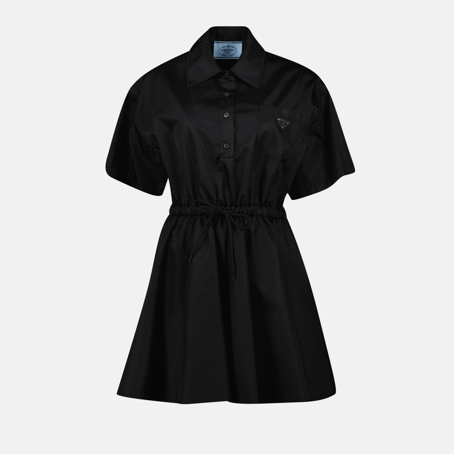 Robe en Re-Nylon noir de Prada pour femme, réalisée en nylon recyclé. Cette pièce fait partie de la collection Printemps-Été 2025, alliant style et durabilité.