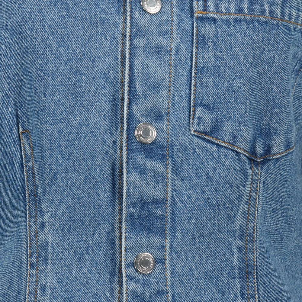 Robe chemise en jean bleu de la marque AMI Paris, conçue pour les femmes. Cette pièce fait partie de la collection Printemps-Été 2025 et se distingue par son style cintré et ses détails élégants.