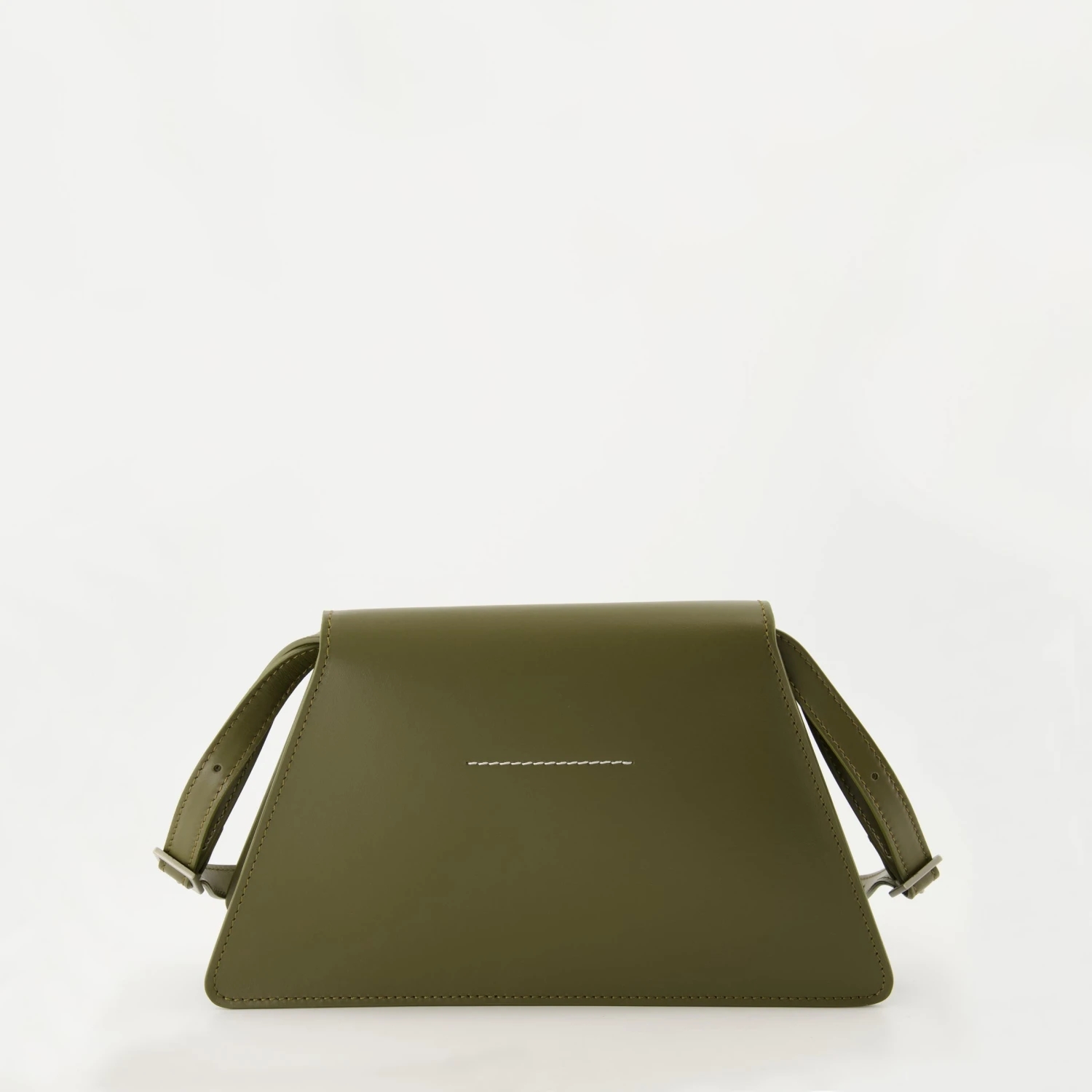 Sac bandoulière Numeric MM6 collection Automne-Hiver 2024 pour Femme. Réalisé en cuir lisse. Article Couleur vert kaki. Bandoulière ajustable. Cet article est disponible en plusieurs déclinaisons.
