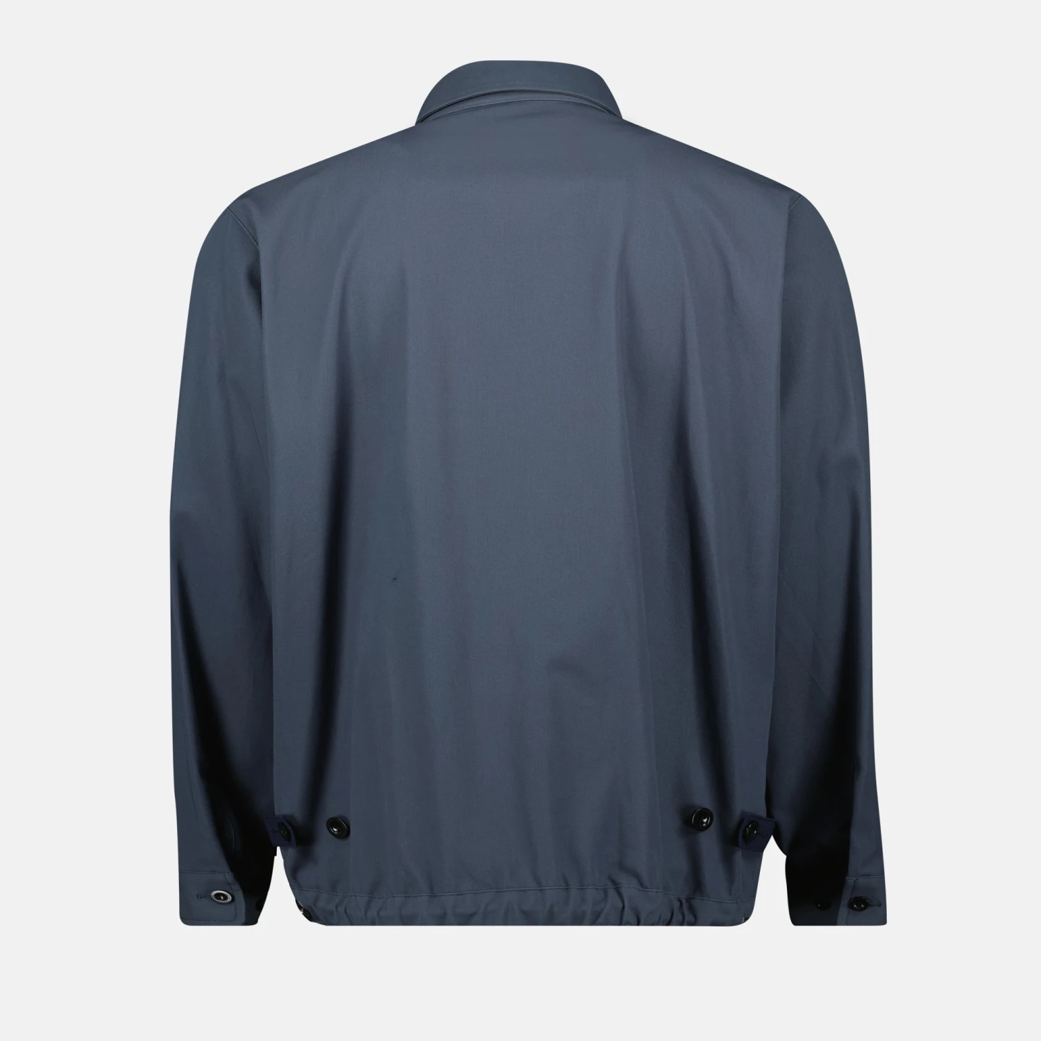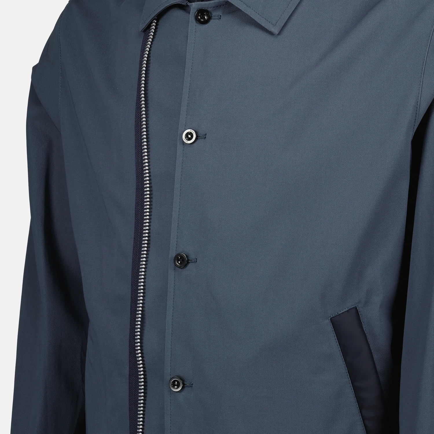 Veste bomber bleu-gris de la marque Sacai pour homme, réalisée en coton. Cette pièce fait partie de la collection Printemps-Été 2025 et présente une coupe casual avec des détails pratiques.