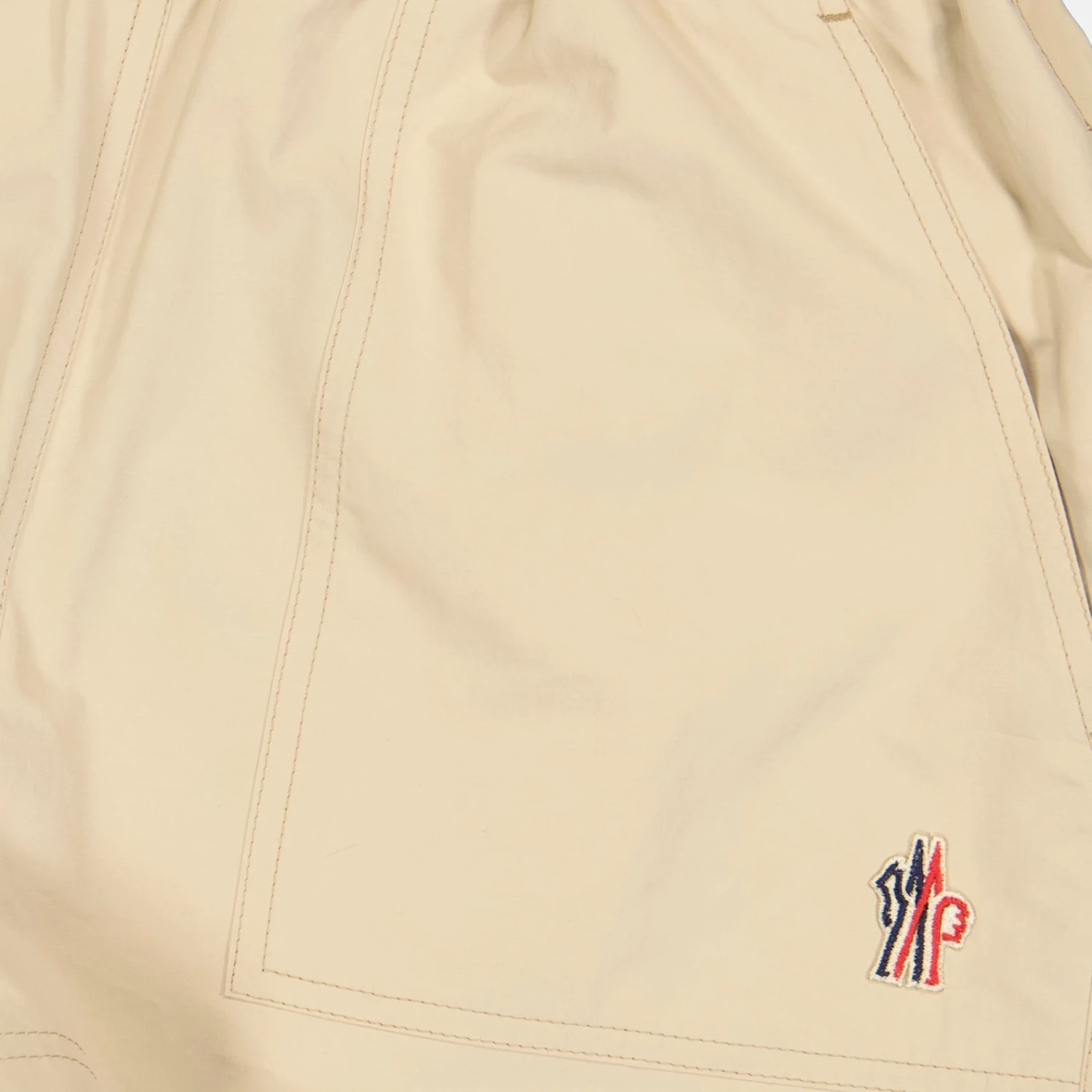 Short en nylon Moncler Grenoble collection Printemps-Été 2024 pour Femme. Réalisé en froissé technique. Article de couleur Beige..