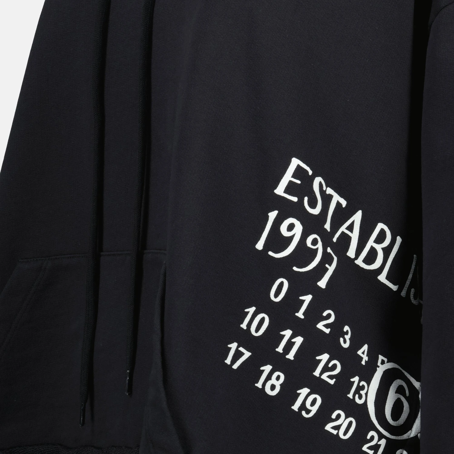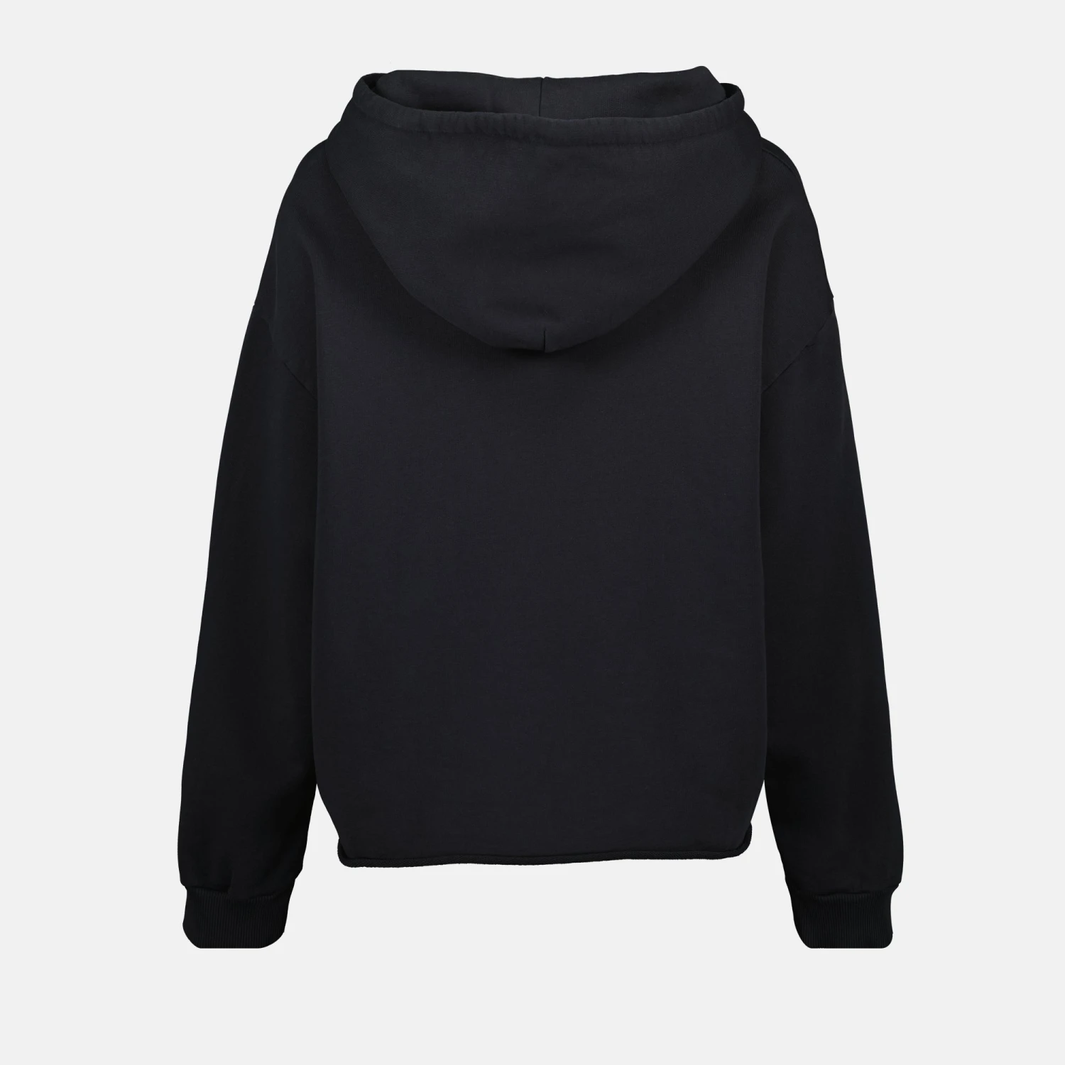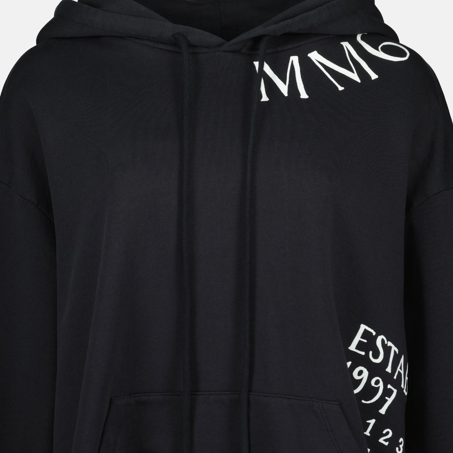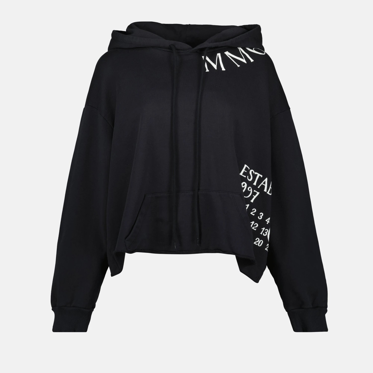 Sweat à capuche Numeric de MM6 est un vêtement pour femme de la collection Printemps-Été 2025. Il présente une coupe courte, des manches longues et un logo imprimé sur un fond noir.