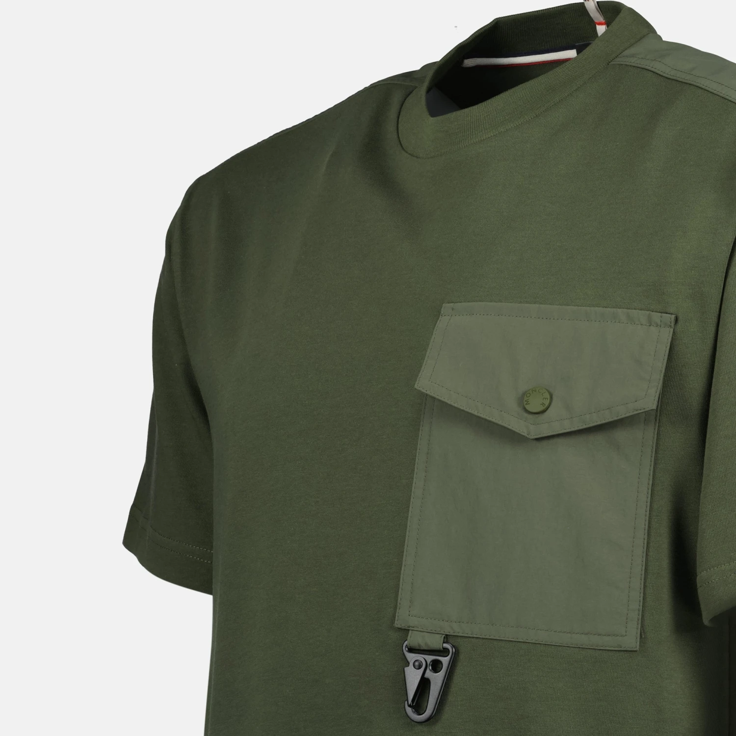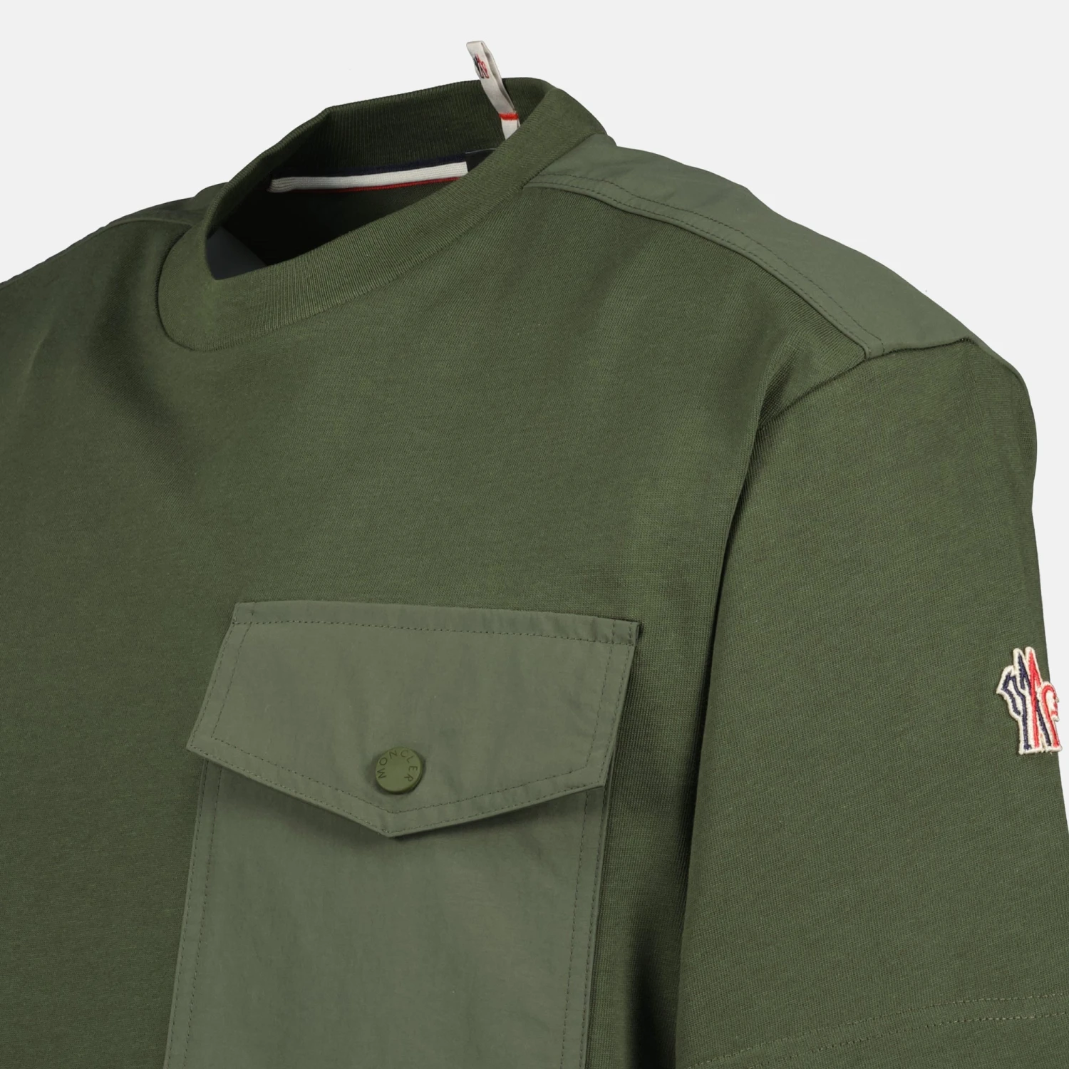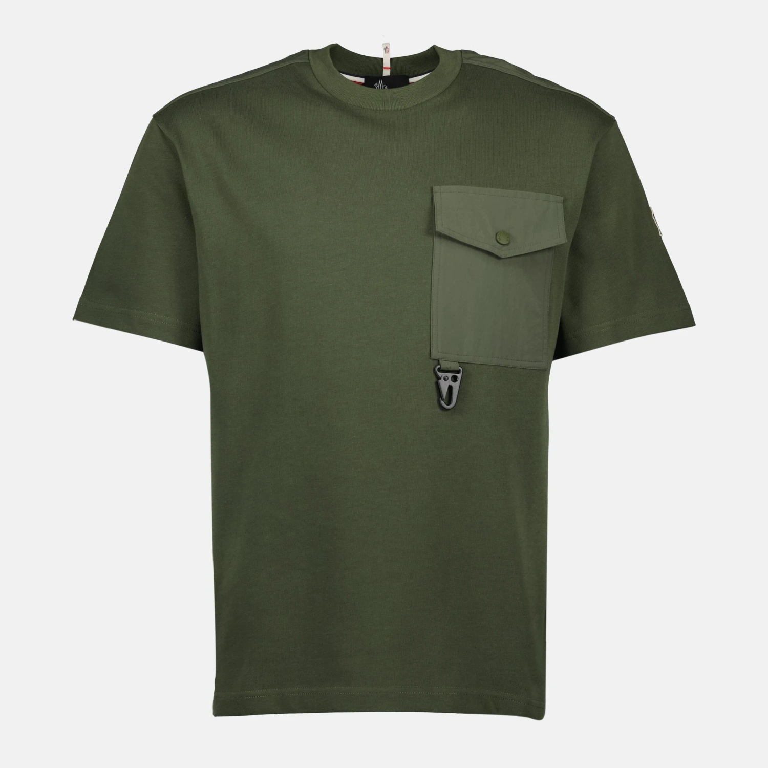 T-shirt avec poche kaki de Moncler Grenoble pour homme. Cette pièce fait partie de la collection Printemps-Été 2025, alliant style et fonctionnalité.