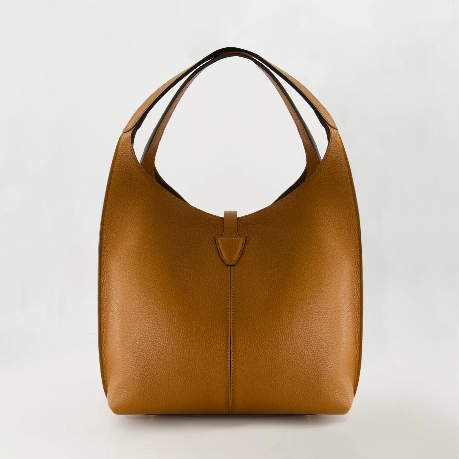 Sac à main T Timeless en cuir marron de la marque Tod’s pour femme. Cette pièce fait partie de la collection Printemps-Été 2025 et présente un design élégant et fonctionnel.