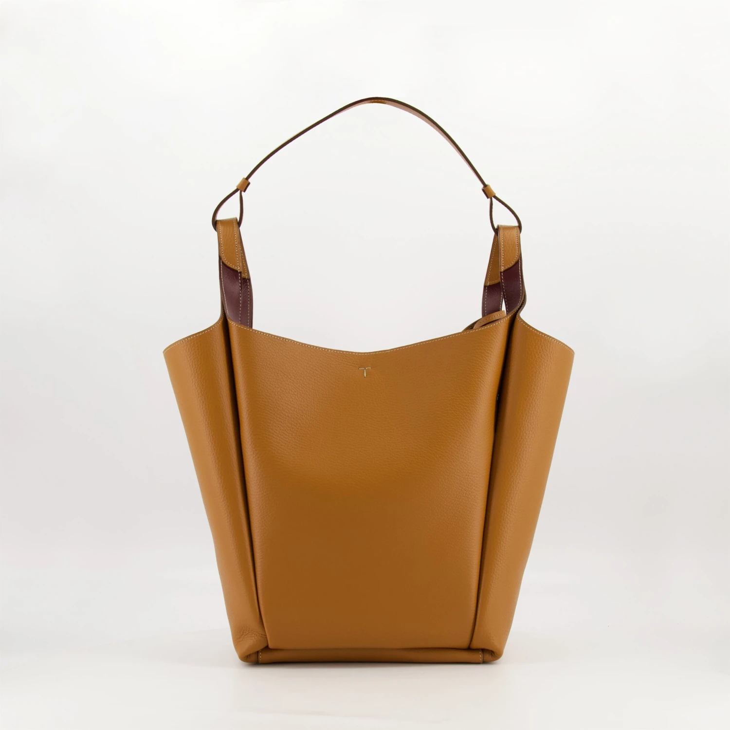 Sac seau en cuir marron camel de Tod’s, conçu pour les femmes. Appartenant à la collection Printemps-Été 2025, il allie élégance et fonctionnalité avec des détails raffinés.