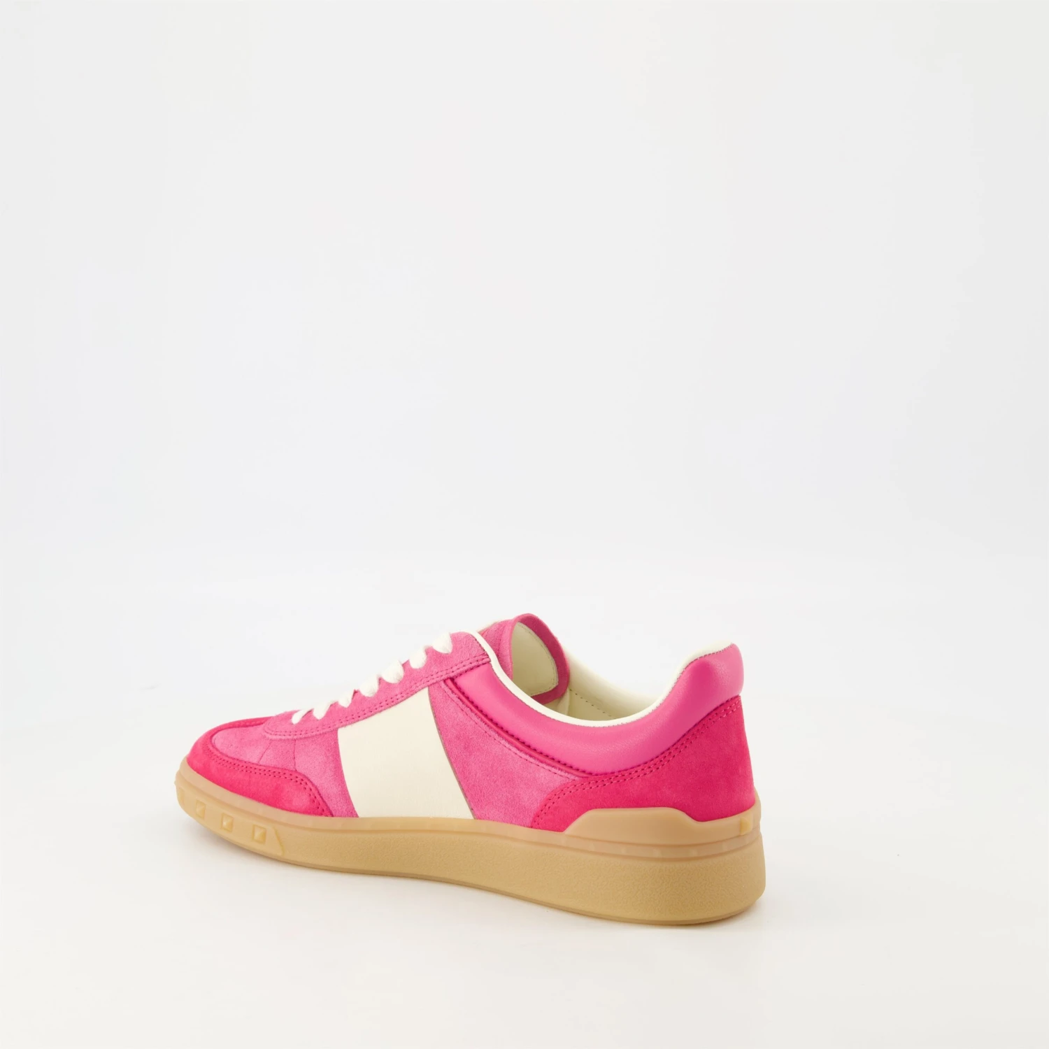 Baskets UpVillage Crosta en cuir rose de Valentino Garavani pour femme. Cette paire fait partie de la collection Printemps-Été 2025 et se distingue par son élégance et son confort.