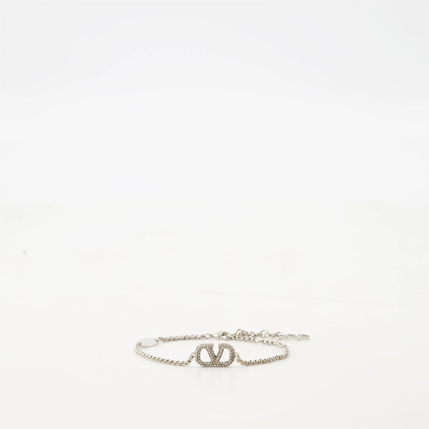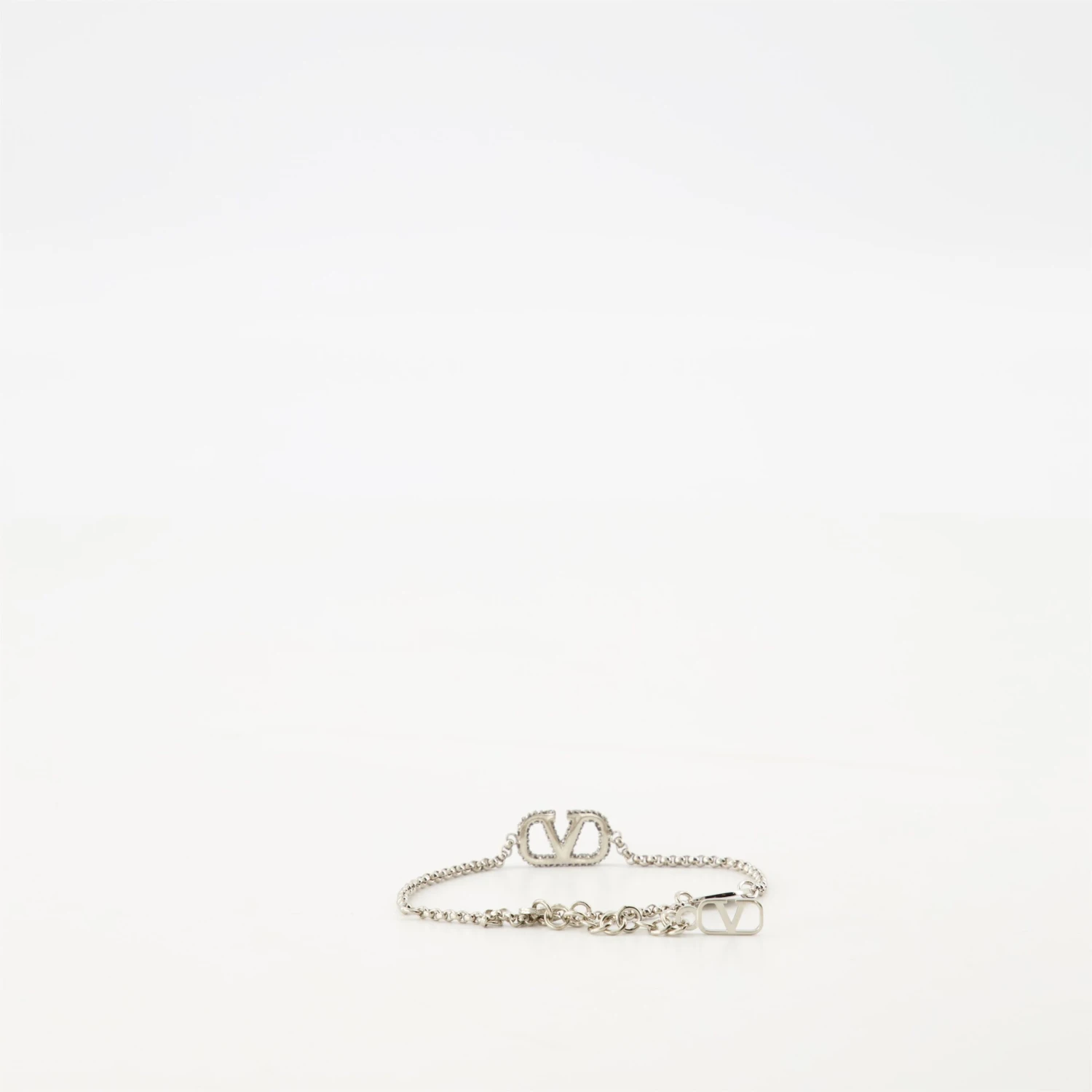 Bracelet VLogo argenté à cristaux Swarovski de Valentino Garavani, conçu pour les femmes. Ce bijou fait partie de la collection Printemps-Été 2025 et présente un style élégant et ajustable.