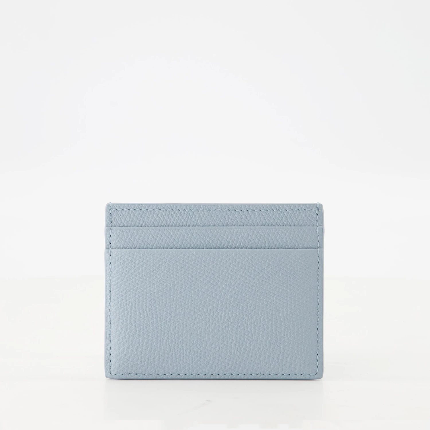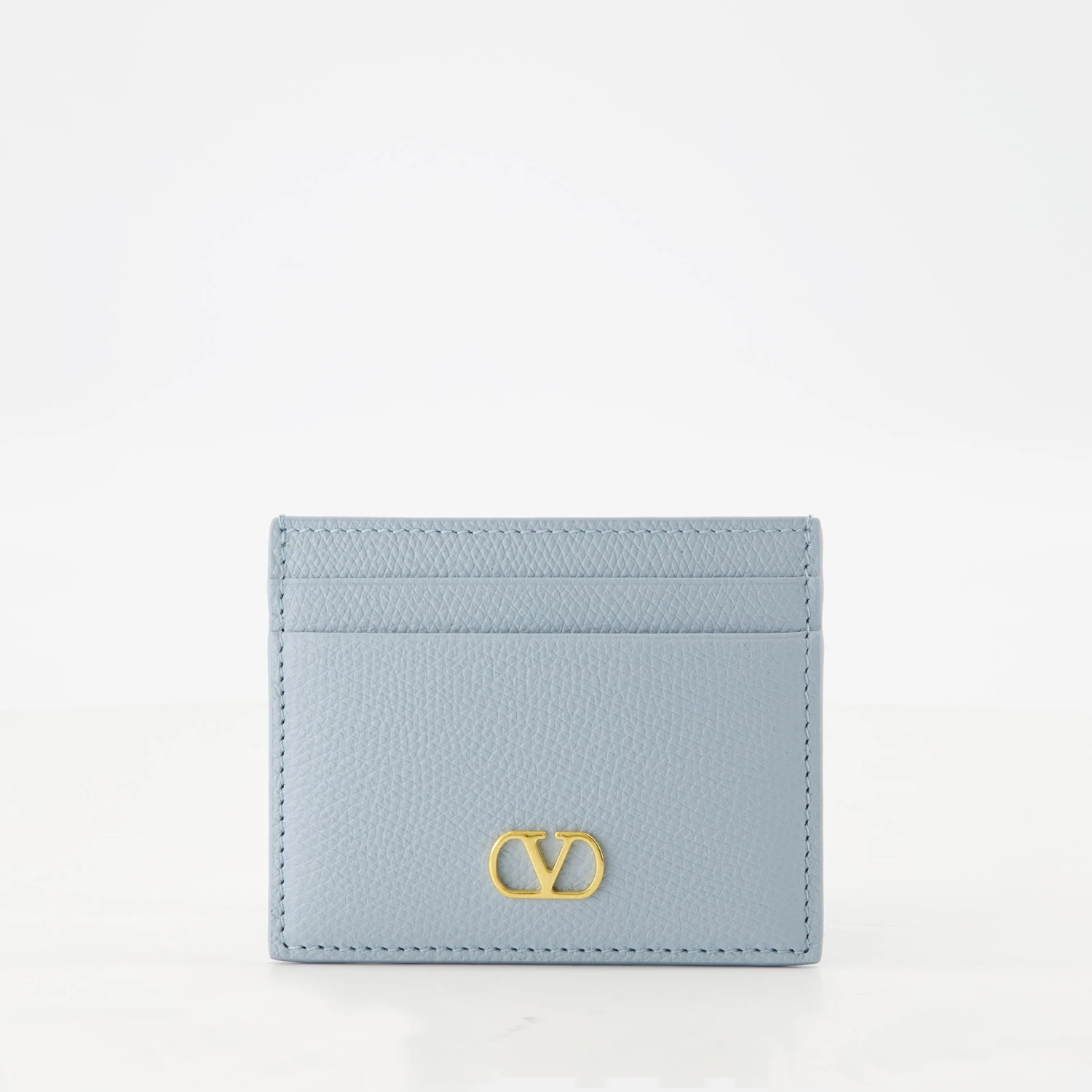 Porte-cartes VLogo en cuir bleu de Valentino Garavani, conçu pour les femmes. Cette pièce fait partie de la collection Printemps-Été 2025 et est réalisée en cuir grainé avec le VLogo Signature.