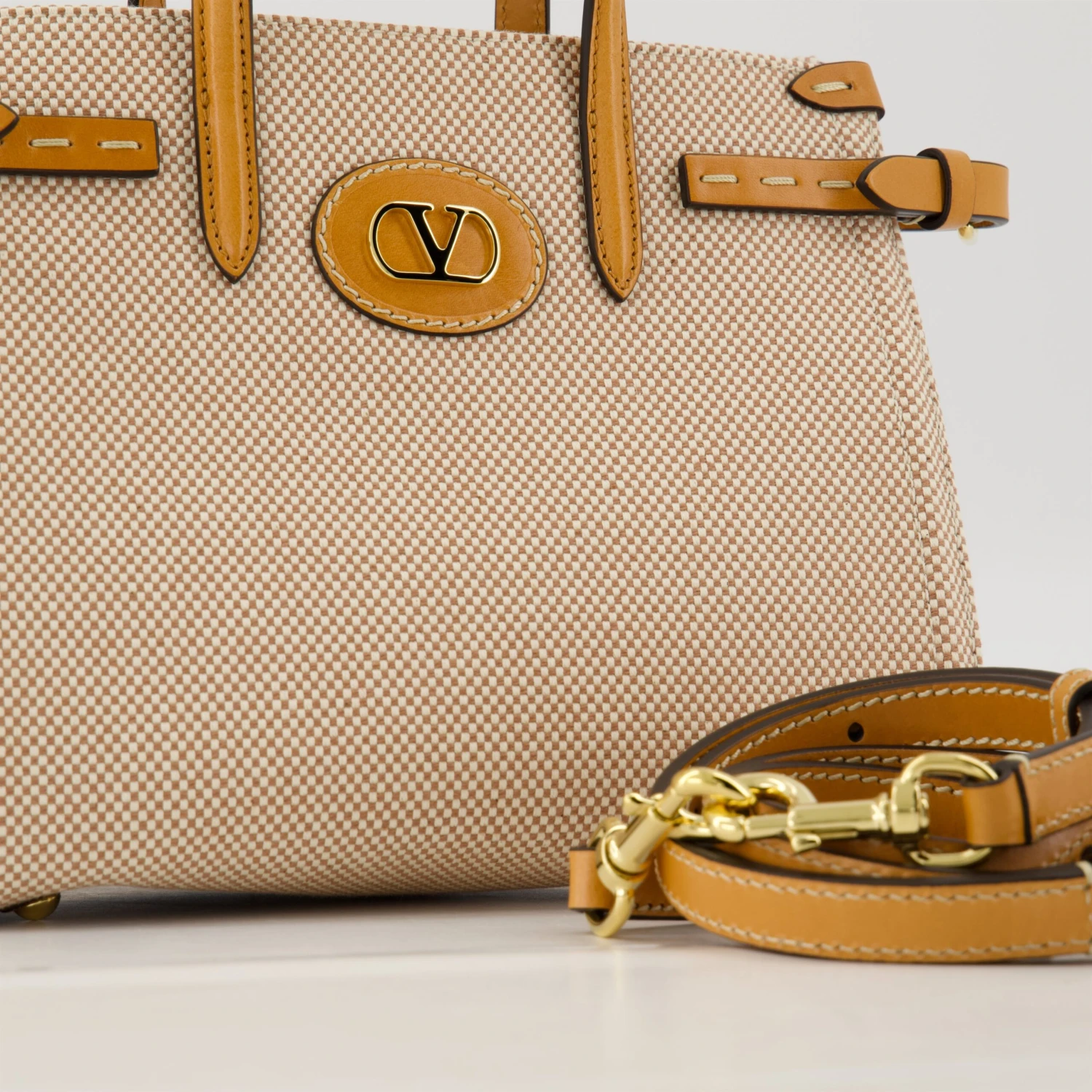 Le Sac Antibes en toile beige de Valentino Garavani est un accessoire féminin élégant. Faisant partie de la collection Printemps-Été 2025, il allie style et praticité avec ses détails raffinés.