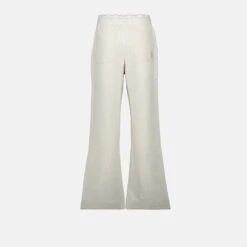 Jeans slim en denim noir de la marque Versace pour femme. Ce modèle fait partie de la collection Printemps-Été 2025 et présente une finition Medusa en métal doré.