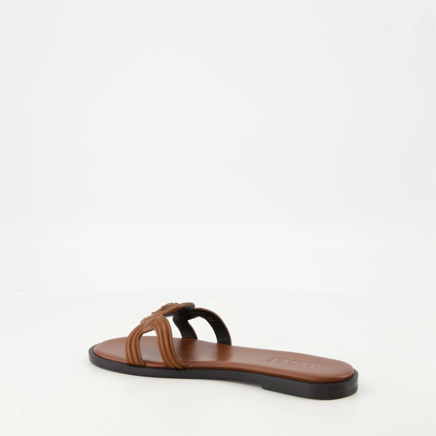 Les Sandales Medusa 95 de Versace sont des chaussures femme en cuir de chèvre. Elles font partie de la collection Printemps-Été 2025 et présentent un motif emblématique Medusa ’95.